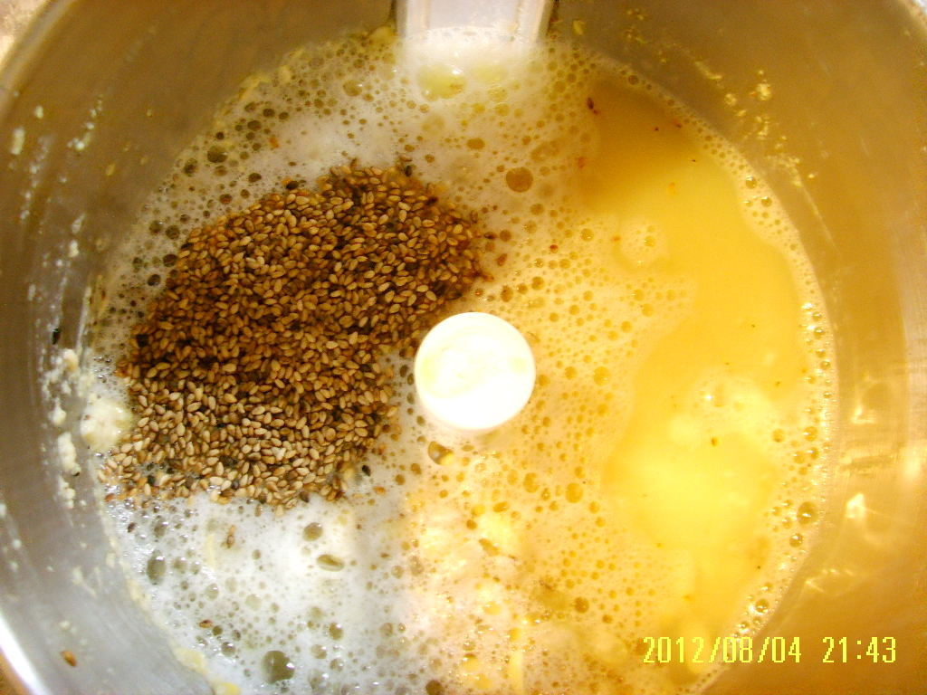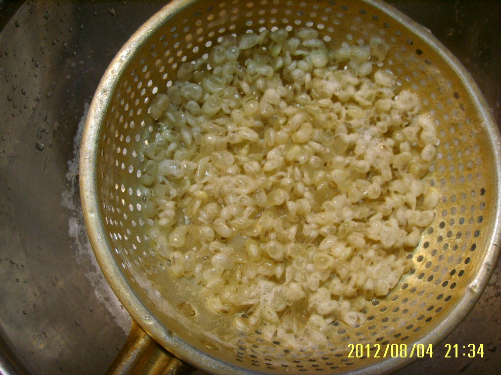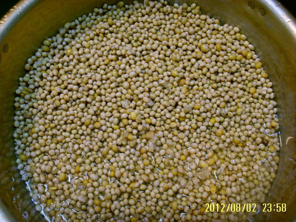 삶아 낸 콩에 볶은 참깨 쬠 넣고는