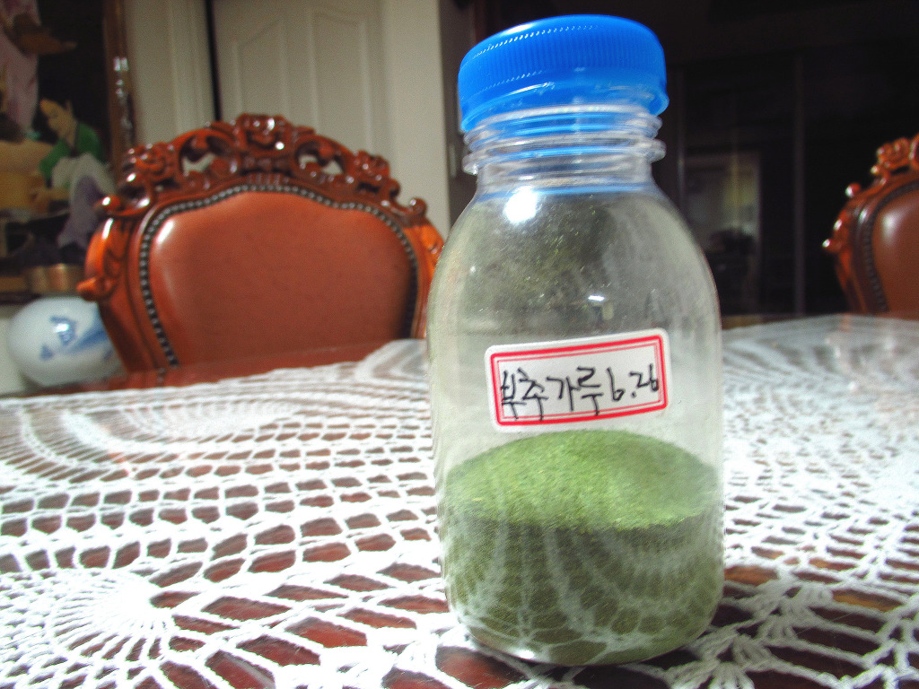 6 - 부추가루에 더운 기운이 사라지면 소독한 유리병에 보관합니다^^*