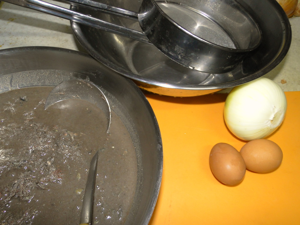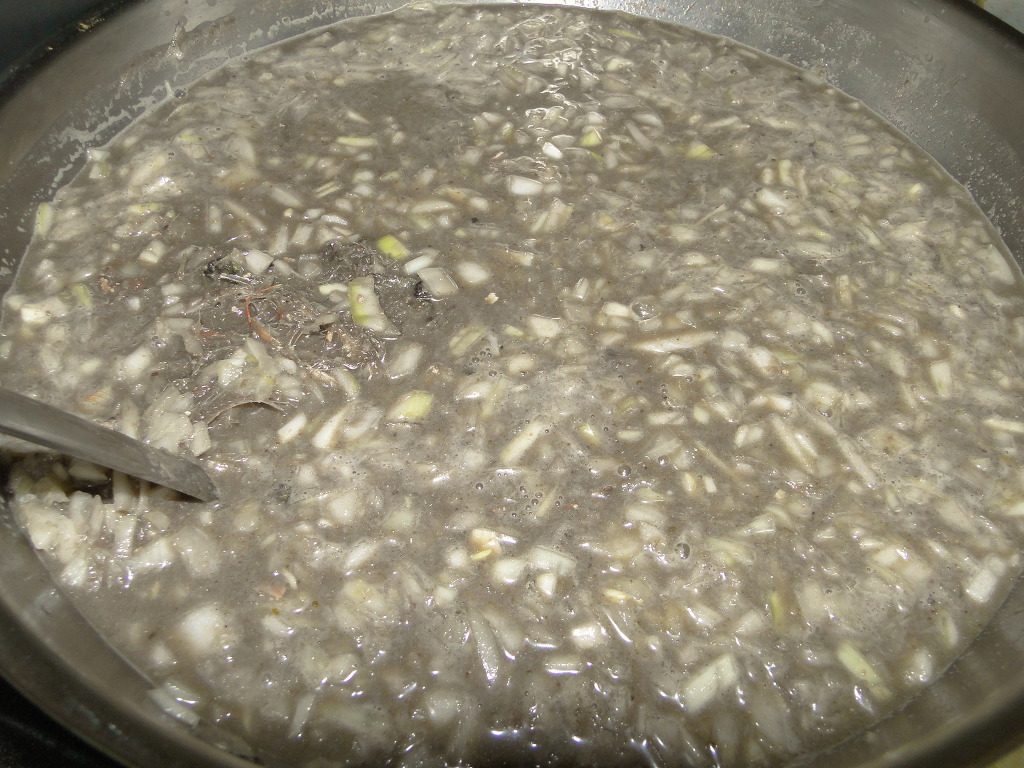 시커먼 젓 1킬로, 양파 큰거 하나, 달걀 두 개, 물 1리터