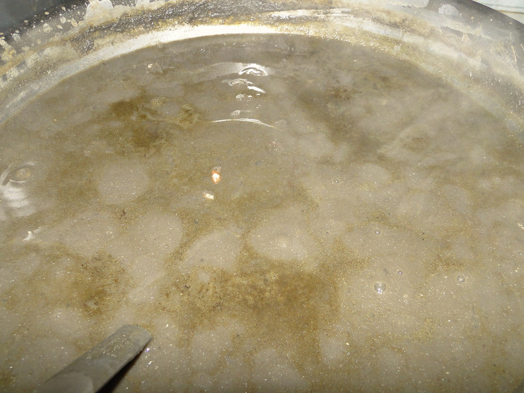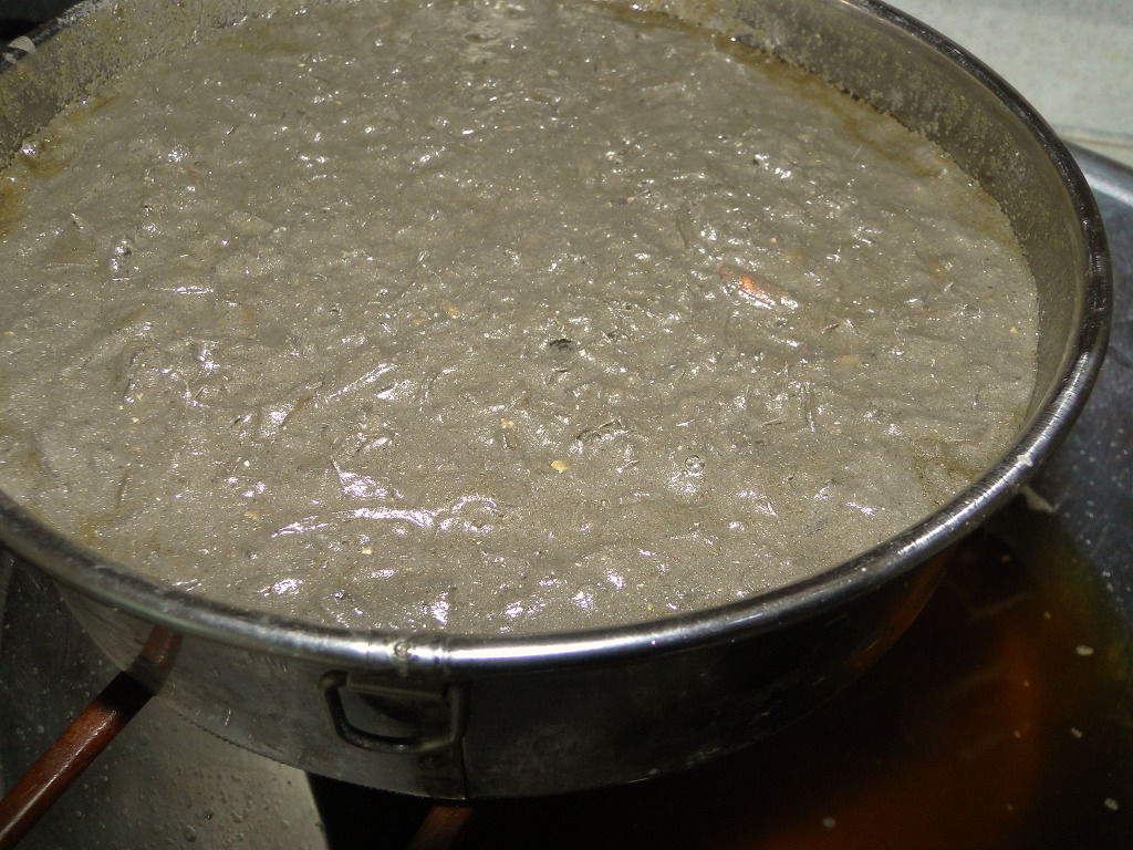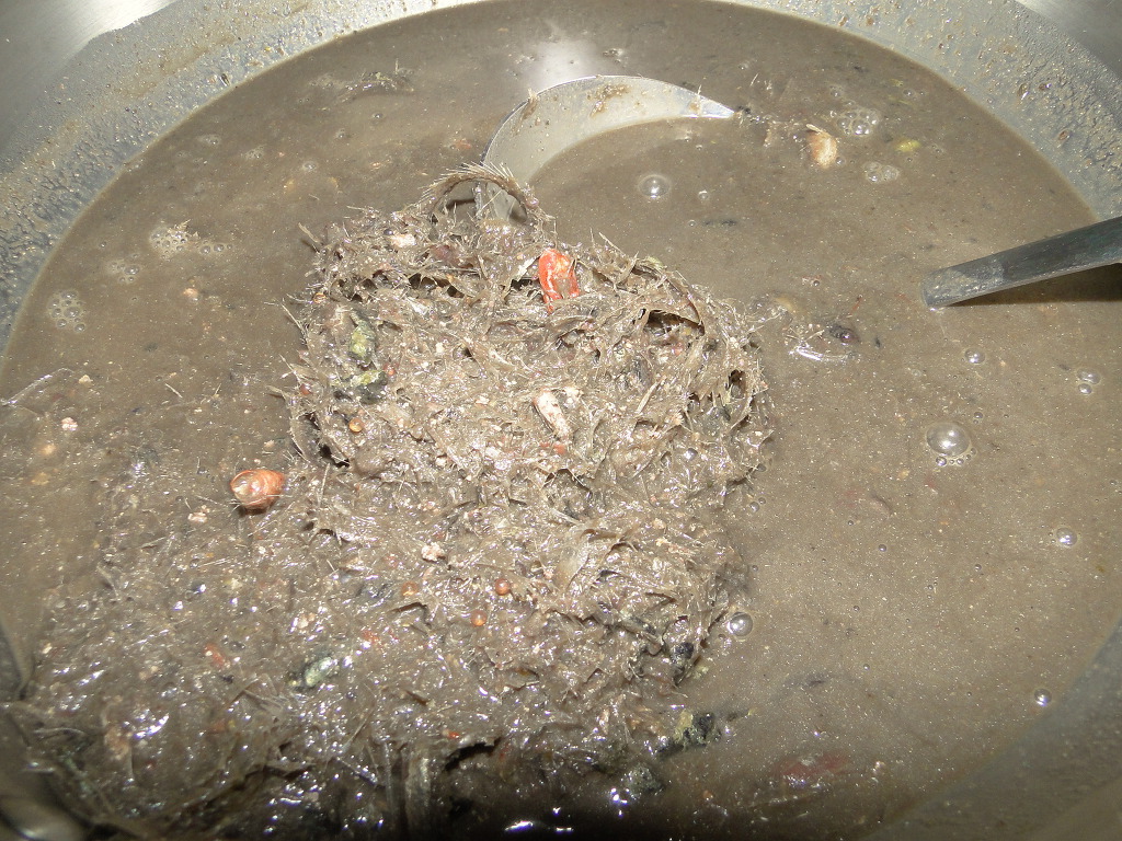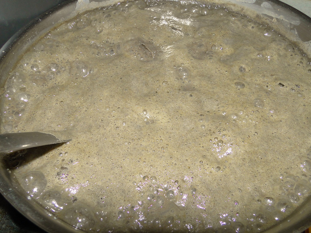 체에 남은 것을 다시 팬에 담고 물을 1리터 가량 부어 잠시 더 끓입니다.