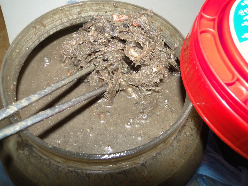 젓갈의 뼈나 침전물이 걸름망 역할을 해서 탁한 게 더이상 안 내려옵니다.