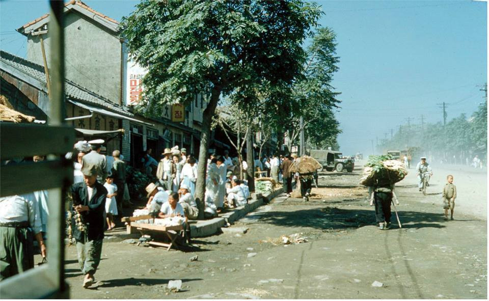 어느 여인인지 50년대에 지금도 전혀 빠지지 않을 패션 감각으로 길을 가네요 ㅎㅎ