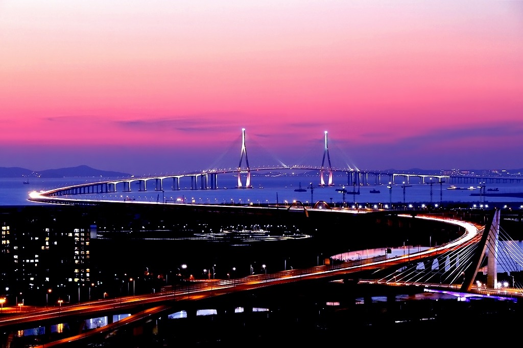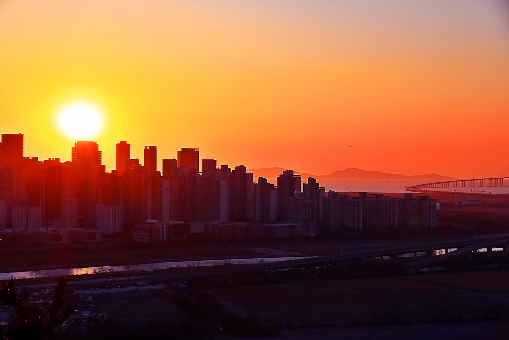 서울 갔던 일이 생각보다 일찍 끝나 넉넉한 휴식을 취하고 날씨가 좋아서 집에서 가까운 동춘동 봉재산으로 갑니다. 울퉁 불퉁한 바위 위에 삼각대 3개밖에 세울 수 없다는 인천대교 야경 촬영지 사진 초보가 어디 어렵지 않은것이 있으랴 만은 풍경 특히 야경은 늘 지니는 생각이지만 참 어렵습니다. 아무도 없는 것을 보고 조금 일찍 왔다 싶었는데 잠시후 수원에서 왔다는 젊은이 둘이 가방을 내려 놓습니다. 서해 바다를 붉게 물들이던 태양이 여우꼬리만큼 남더니 아파트 옥상에 걸리고 영종도로 향하는 비행기는 40초 간격으로 인천대교 위 노을속에서 기수를 낮춤니다. 어제는 문학산에 올라 저곳을 바라 보았습니다. 지는 해가 구름속에서 숨바꼭질을 하더니 오늘은 구름 없는 하늘가에 붉은 물감이 수채화처럼 번져갑니다. 매직타임이 절정으로 가니 고층 아파트와 문학터널에서부터 논스톱으로 달려오는 자동차 불빛과 가로등 바다를 가로지르는 인천대교의 불빛이 어우러져 마치 불이라도 난것처럼 벌겋습니다. 같은 취미를 가지고 있는 사람끼리 이런말 한다는 건 뭐하지만 말입니다. 늦게온 나이 지긋한 두 사람 협소한 바위 위에서 조심 스럽게 삼각대를 펼쳤는데 그 사이를 파고 들어오더니 정서불안에 보아하니 카메라 다루는 것도 서툴고 삼각대라도 건드릴까봐 넥스트랩을 잡고 조심하느라 다리가 뻐근했드랬습니다. 일출 1번지가 동해의 정동진이라면 일몰 1번지는 정서진 인천대교 앞의 여기가 아닐까 싶습니다. 시기를 잘 맞춘다면 주탑사이로 떨어지는 일몰과 송도 신도시의 야경까지 담을 수 있는 최고의 출사지가 아닌가 싶네요. S라인으로 시작되는 인천대교를 지금은 야경으로 담고 있지만 저 곳에 흘린 내 땀방울도 꽤나 많았음을 생각하니 감개가 무량해지기도 합니다. 우수도 경칩도 얼마 남지 않은 봄의 시작이기도 한 멎진 계절 지금도 현재진행형으로 건설되고 있는 송도 신도시의 화려한 불빛을 바라보며 모든 이웃님들의 봄이 행복했으면 하는 소망을 담습니다. 감사합니다... |