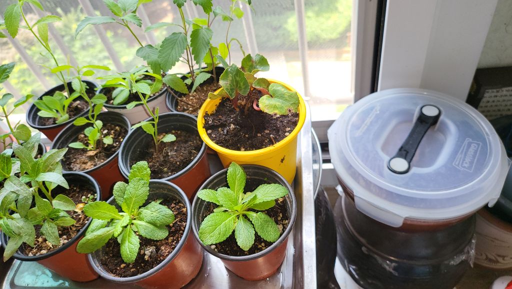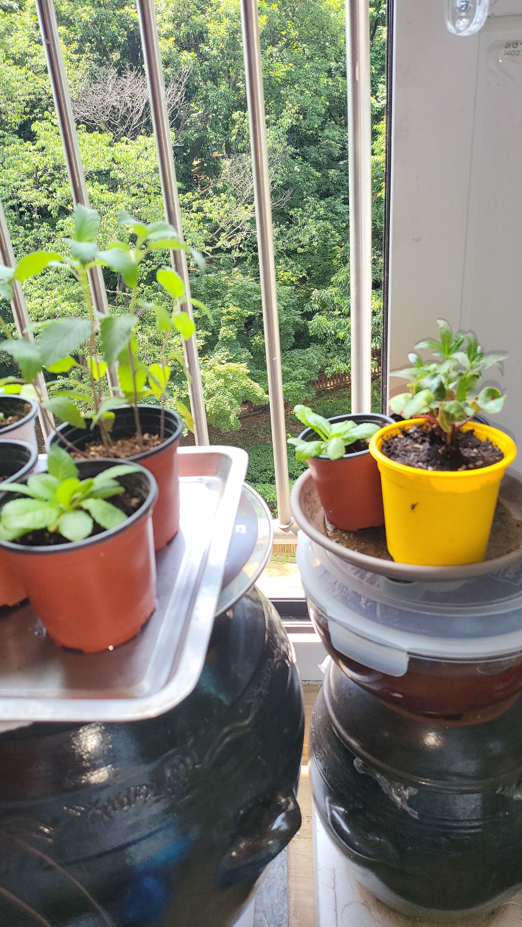 분갈이 할 것이거나 밖으로 나가야 하는 화분들인데 장마 중이라 소나기에 으쳐질까봐 못 나가고 있는 화초들입니다.