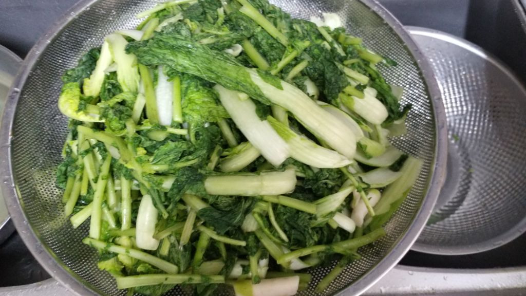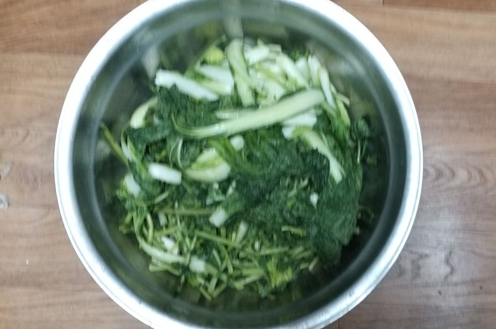 절여진 김치거리를 씻어 물기를 뺐습니다