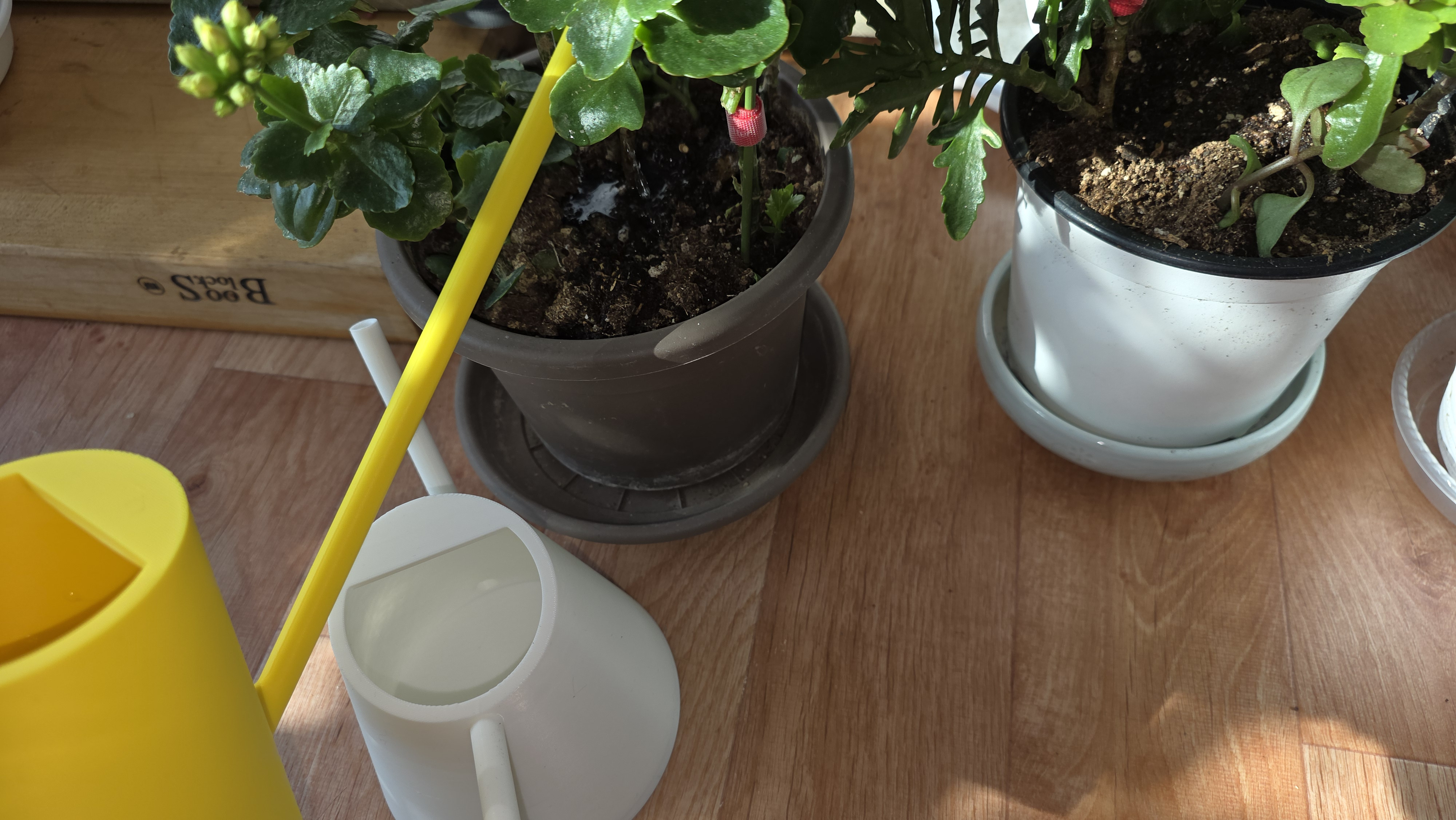 맹물은 잎에 닿아도 괜찮지만 액비는 밑으로 주어야 하는데... 꼭지가 화분 안으로 깊숙이 들어갈 수 있어서 좋습니다.