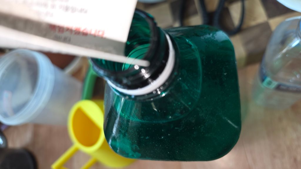 1.5리터들이 병에 물 가득 채우고 명반을 넣었음