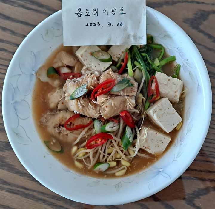 작성자김진철(대구달서구) 작성시간 23.03.13 콩나물괴 미나리로 더 시원한 동태국이 되었습니다