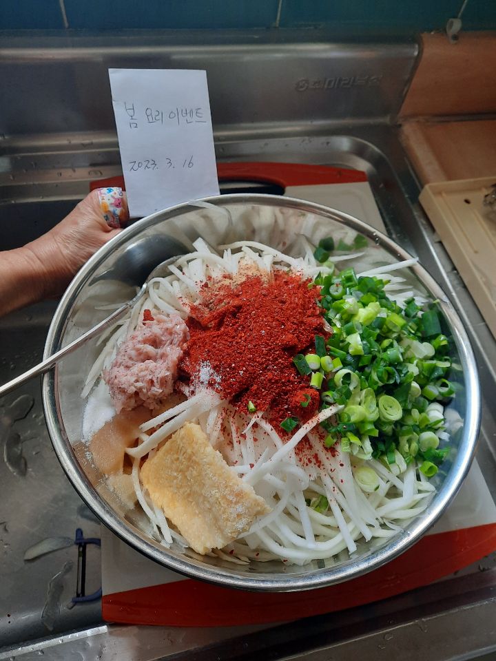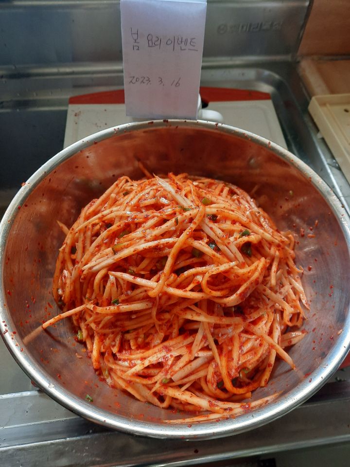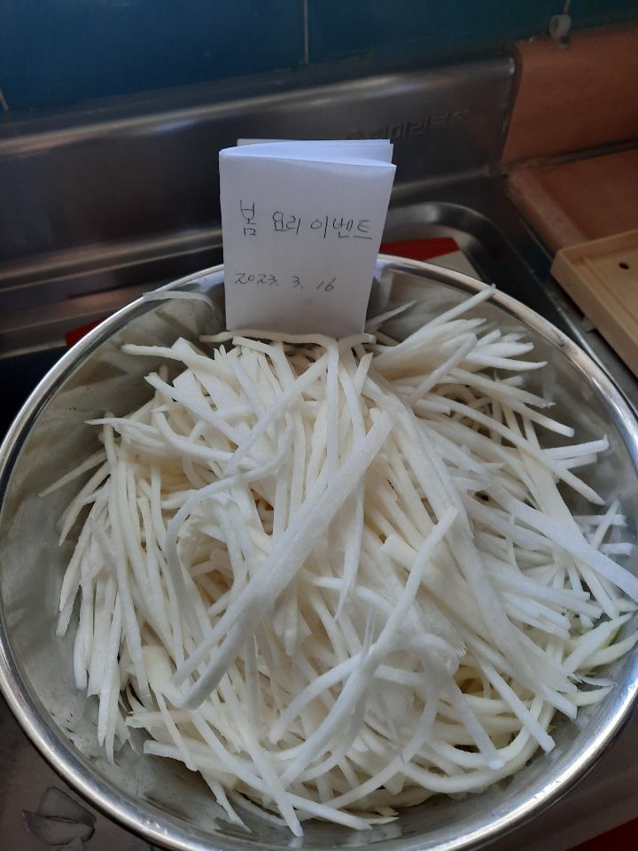 작성자김진철(대구달서구) 작성시간 23.03.16 무우생채로 국수끼미를 만드셨내요