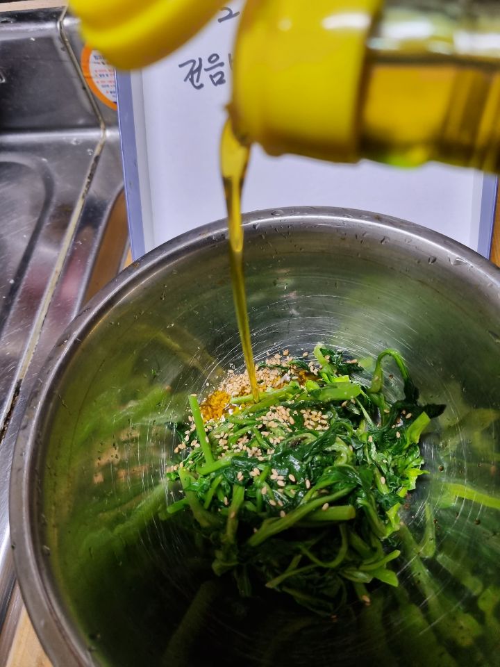 이 나물 무침은 설탕이 필요 없으므로 집간장을 먼저!