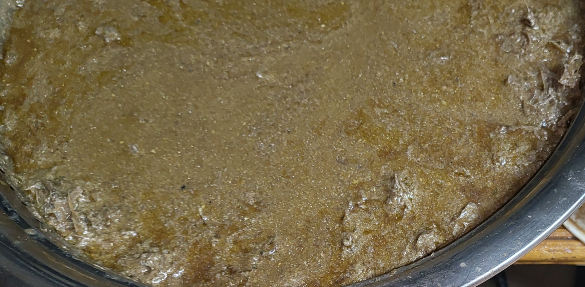 뼈까지 다 퍼 올린 것 같은데, 솥밑에 하얀 게 보입니다.