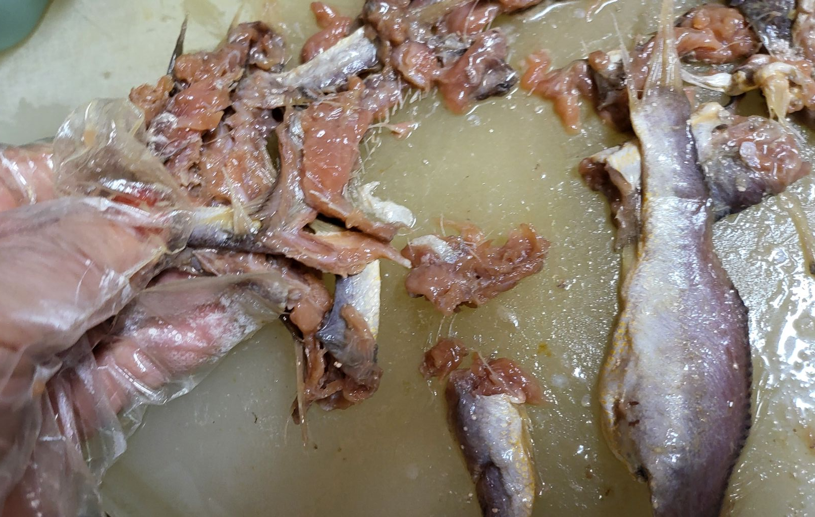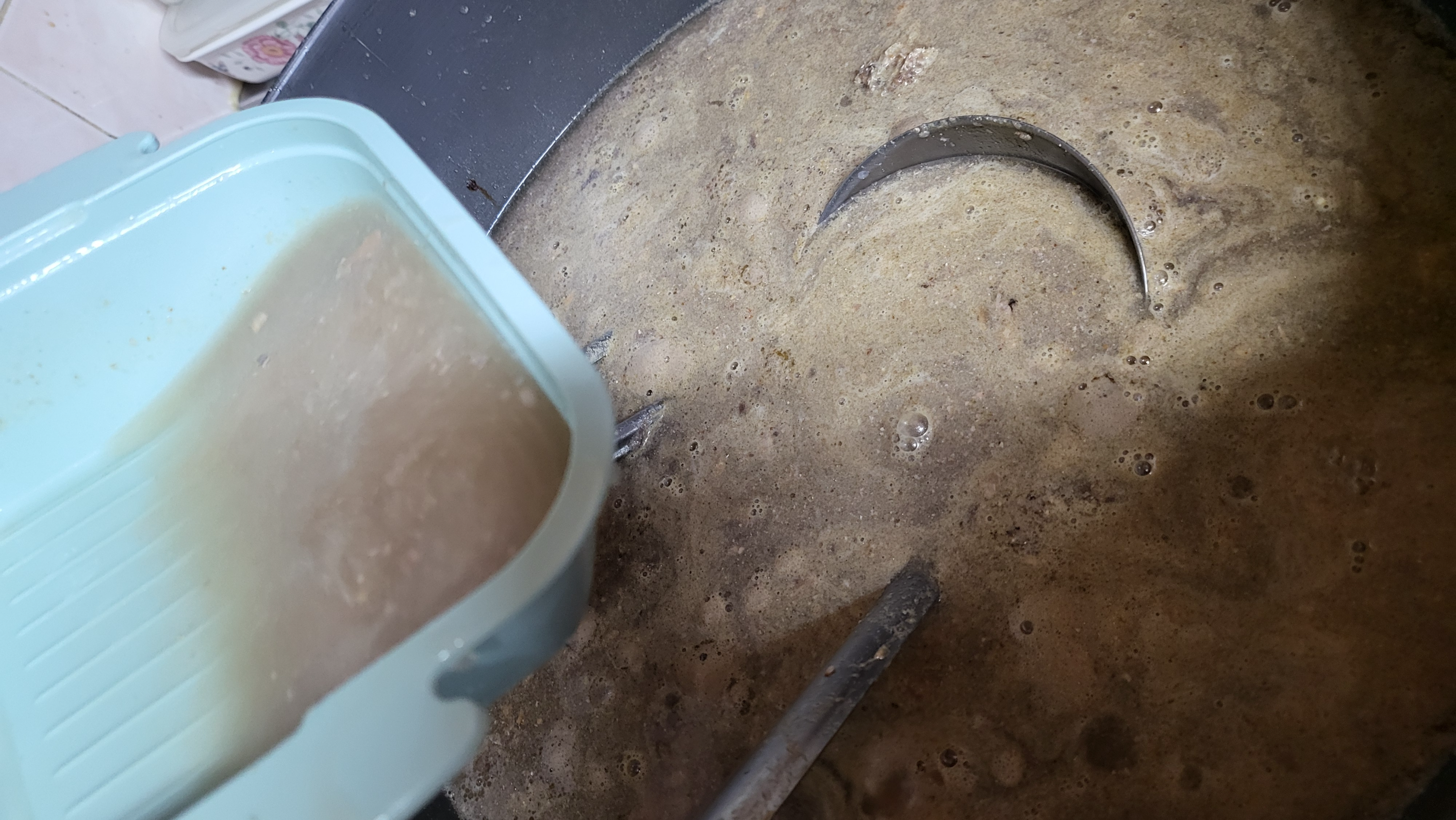 얼른 헹구고 뼈와 함께 젓갈 끓이는 솥에 넣으려고 먼저 한 겁니다.