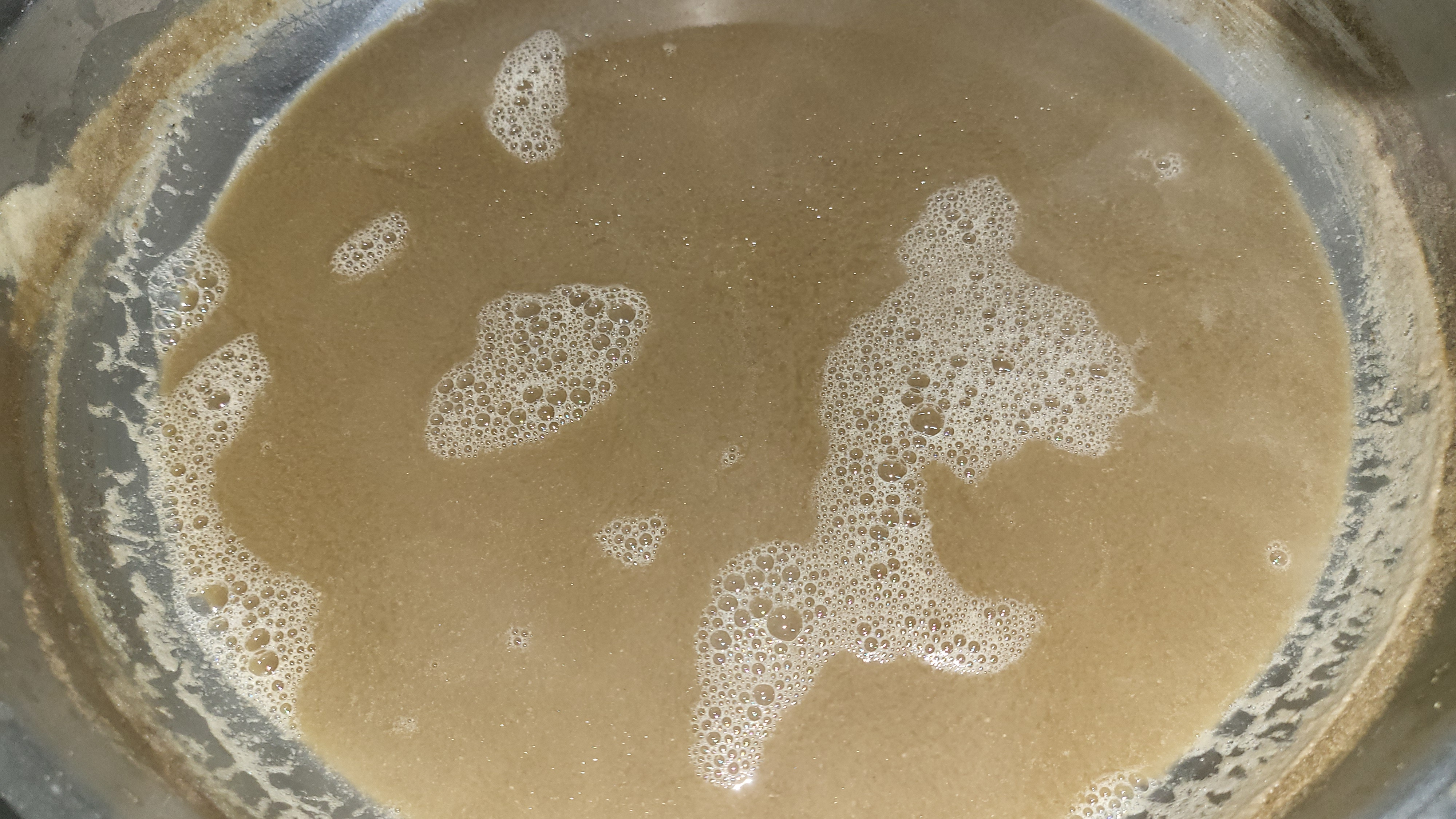 끓인 국물 바닥을 보면 모래알 같은 게 많이 있습니다.