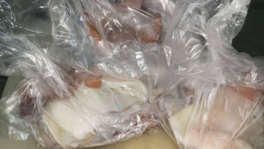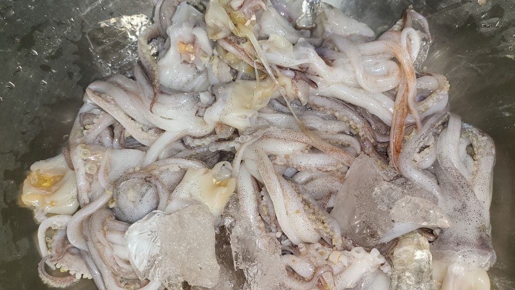 오징어 등 생선을 손질할 때 같이 온 얼음을 버리지 말고 그 얼음에 채워가면서 손질을 하면 신선도 유지에 좋습니다.