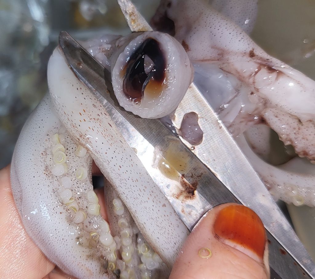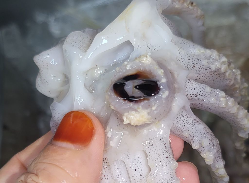 오징어 입 주변에 있는 이 하얀 물체는 절대로 먹으면 안 됩니다.
