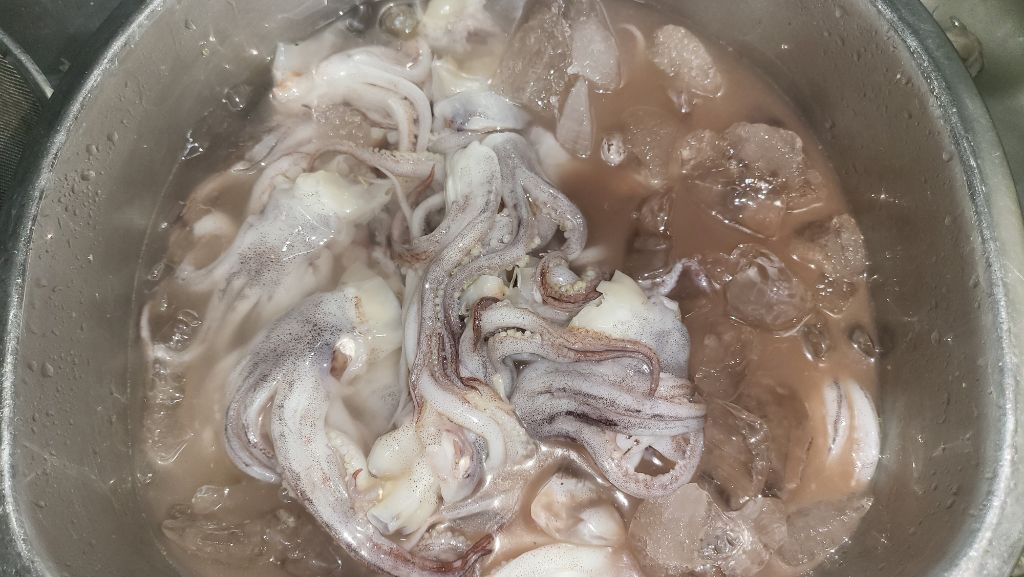 오징어 다리도 얼음에 넣어서 씻으면 좋습니다.