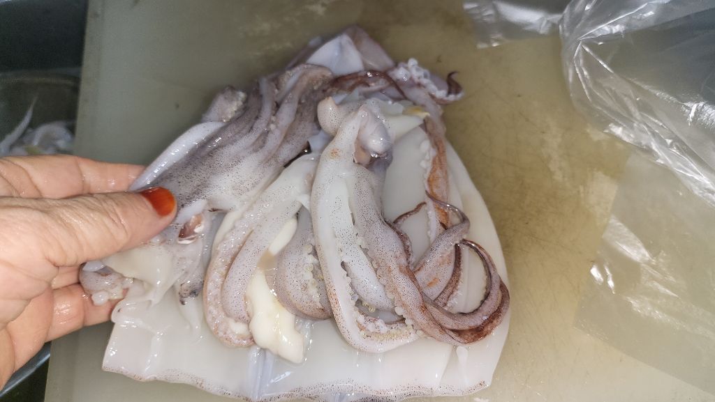 오징어 내장을 다 빼냈습니다. 오징어를 택배 받아서 손질 안 하고 그냥 보관한다는 이들이 있는데