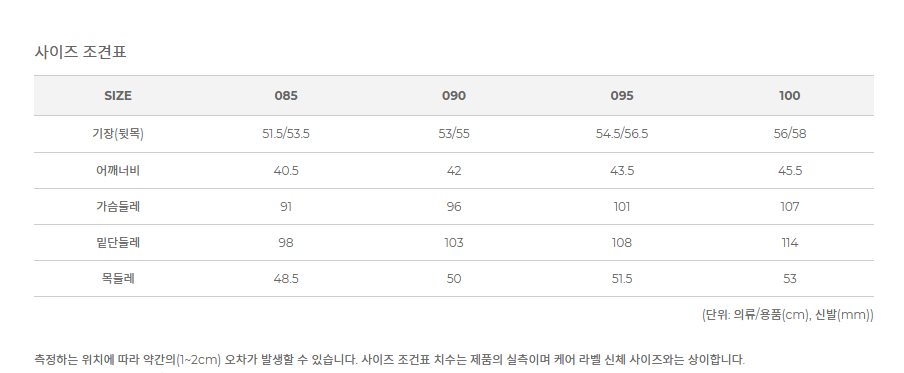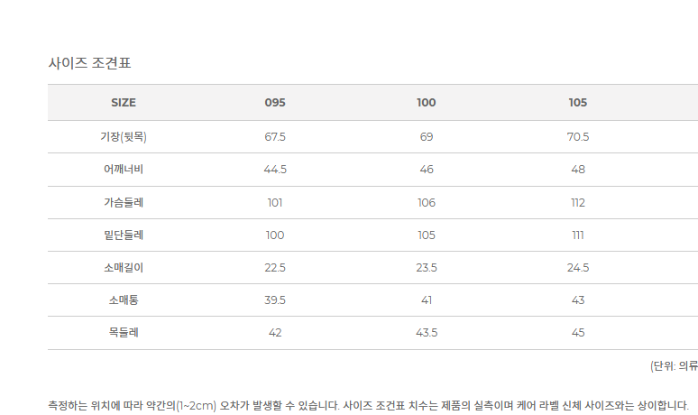 사이즈 95, 100, 105