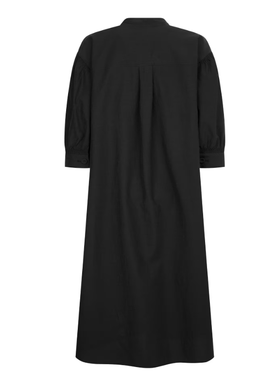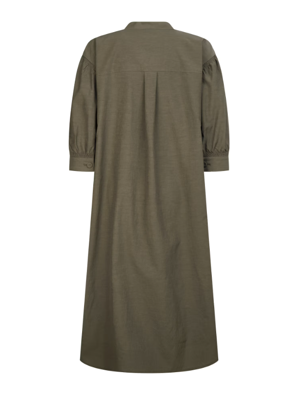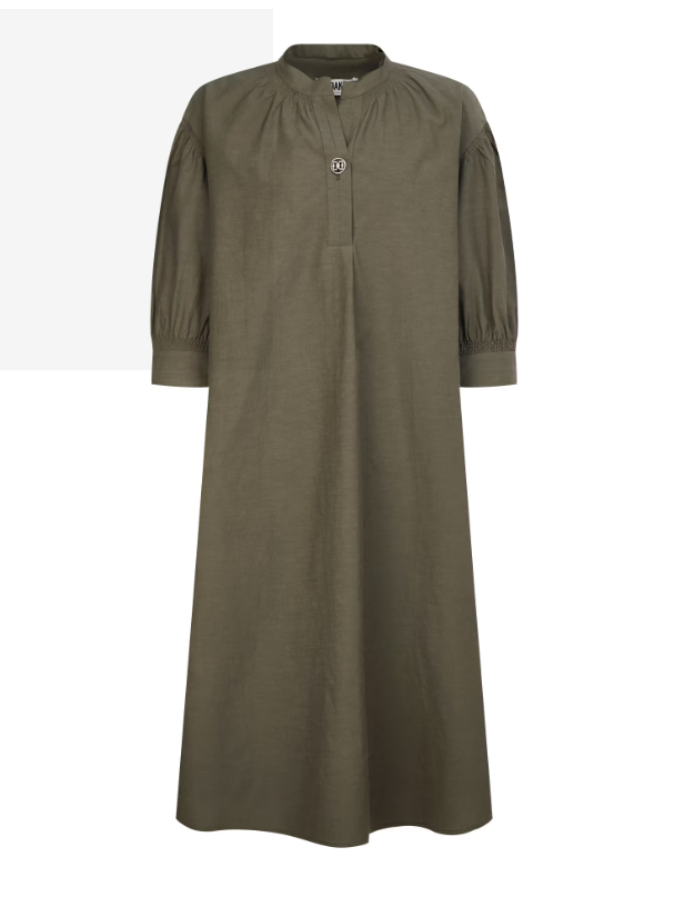 제품특징 : 넥라인에 귀여운 셔링이 잡혀있는 면혼방 7부소매 원피스 입니다.