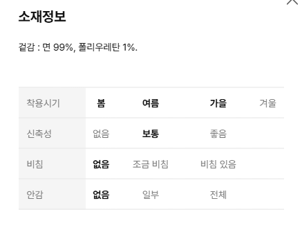 소 재 : 면 99%, 폴리우레탄 1%