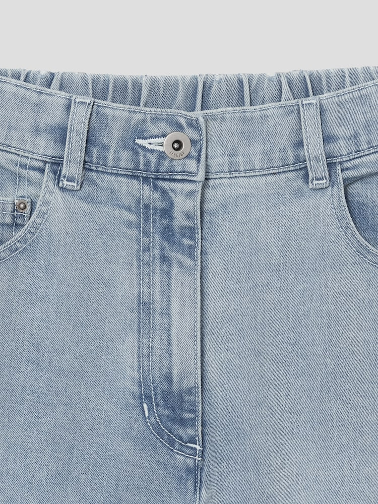 허리 뒤 밴딩 디테일로 착용감이 편안하며, 뒷주머니에 가죽 라벨로 포인트를 더했습니다.
