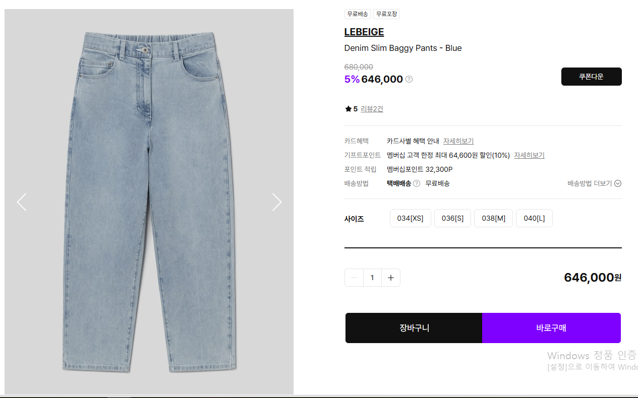 지금은 5% 세일해서 646,000원에 판매되고 있습니다.
