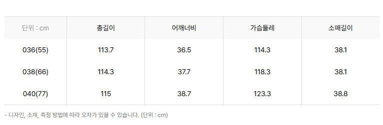 카 키 55(55/마른66), 66(통통66/마른77)