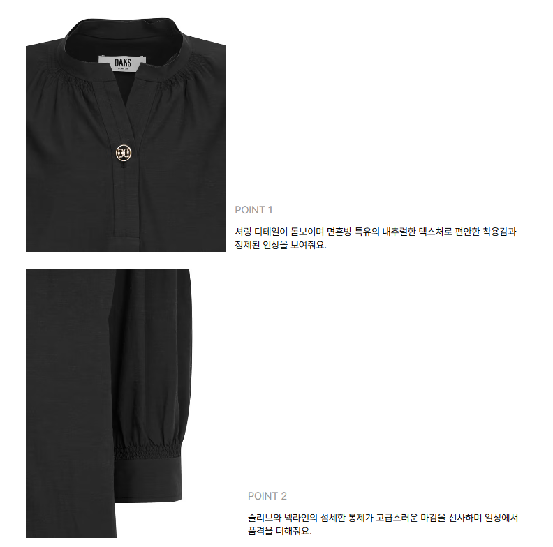 구김 걱정없고 기계세탁 가능하고 활동성이 우수한 제품으로 데일리하게 입으실 수 있습니다.