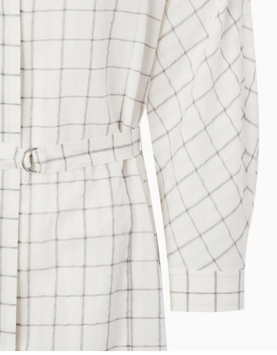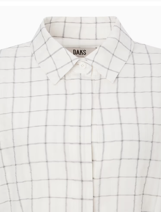 1. 아이보리 체크 탈착스트랩 면 7부 소매 셔츠
