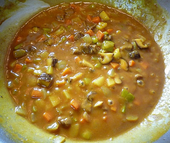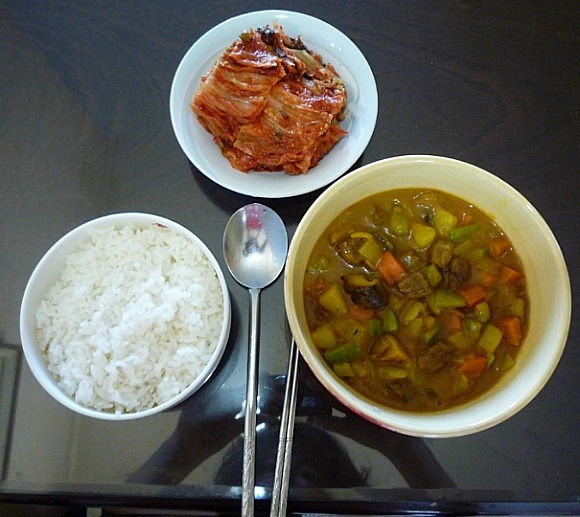물 넣고 팔팔 끓이다가, 카레 넣고요.