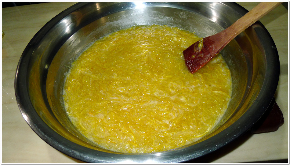 껍질을 벗겨 곱게 채치고 설탕을 대충 4키로 넣고 버무려 두었다가 속은 씨를발려내고 녹즙기에 짜서 섞어주었습니다.