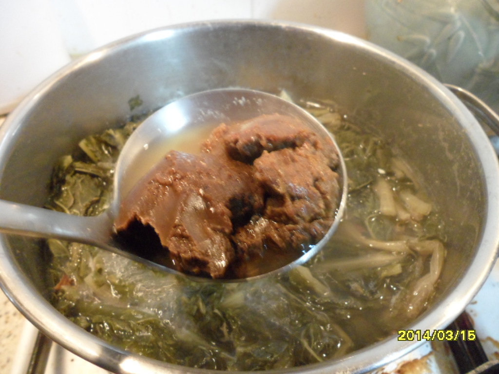 된장을 풀고,,,,