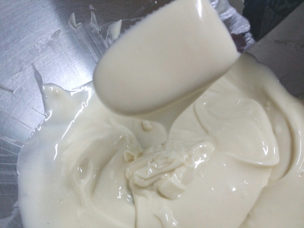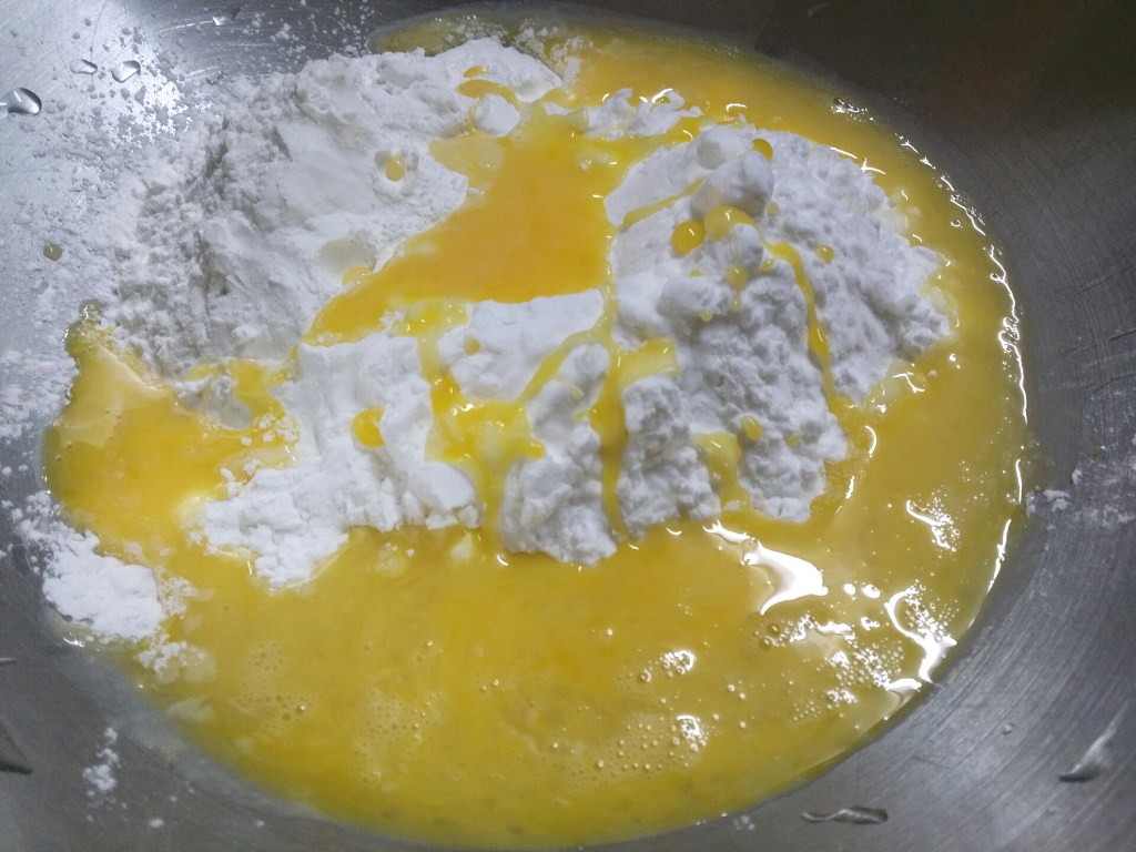 감자전분7 : 옥수수전분3 에 계란 하나 체에 걸러 넣고...