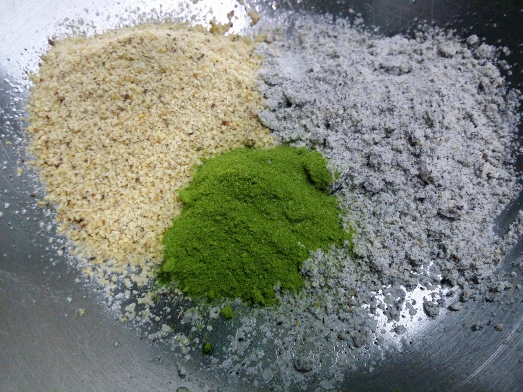 들깨가루, 흑임자가루, 부추가루 준비해서...