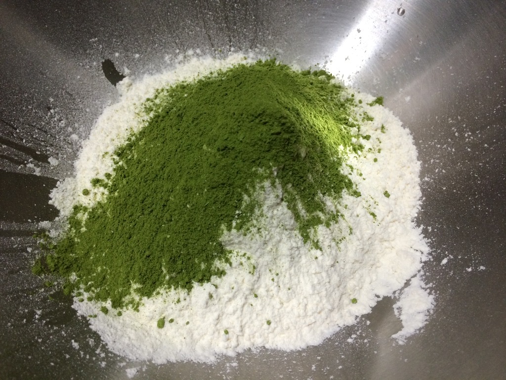 1. 감자수제비가루에 부추가루를 섞습니다