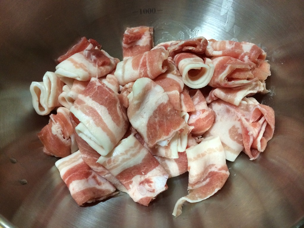 1. 마트에서 파는 냉동대패삼겹살(수입-독일)을 해동시킵니다