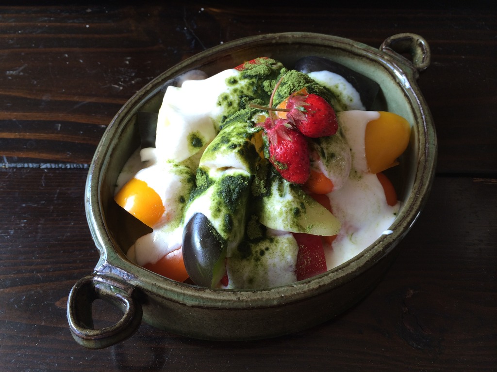 고명으로 아파트 한바퀴 돌아 수확해온 버찌열매와 오디를 얹었습니다