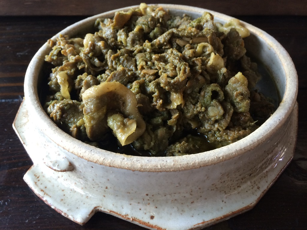 5. 부추가루를 넣었더니 살짝 녹색을 띤 대패삼겹살볶음이 되었네요