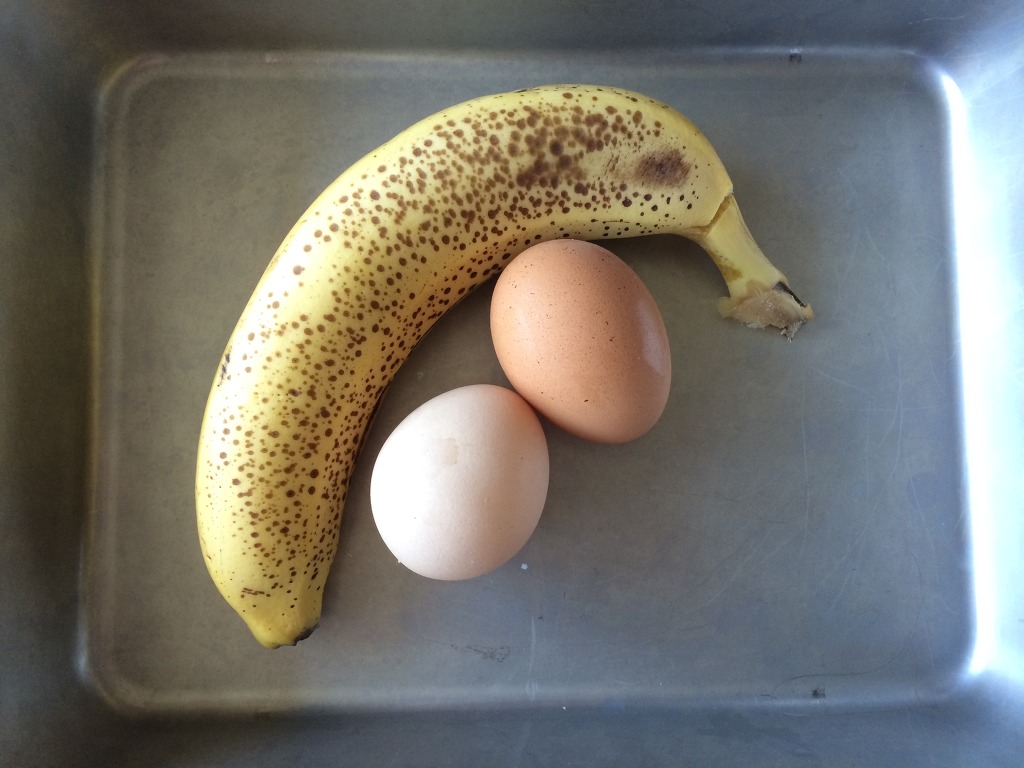1. 바나나한개에 계란두개를 준비합니다