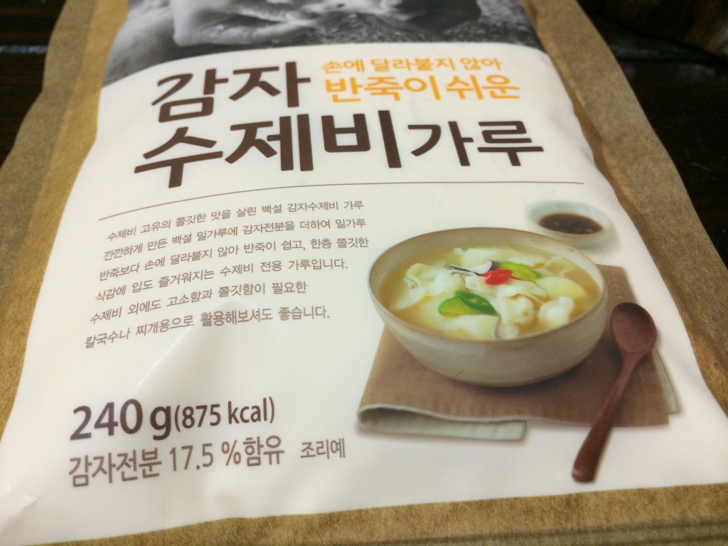 이번엔 밀가루가 아닌 감자수제비 가루로 반죽을 했는데