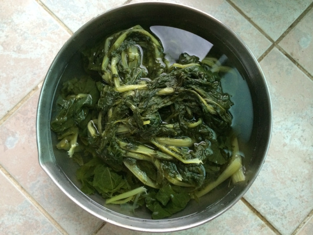 삶아얼린 시래기는 해동하려 물에 담갔다가