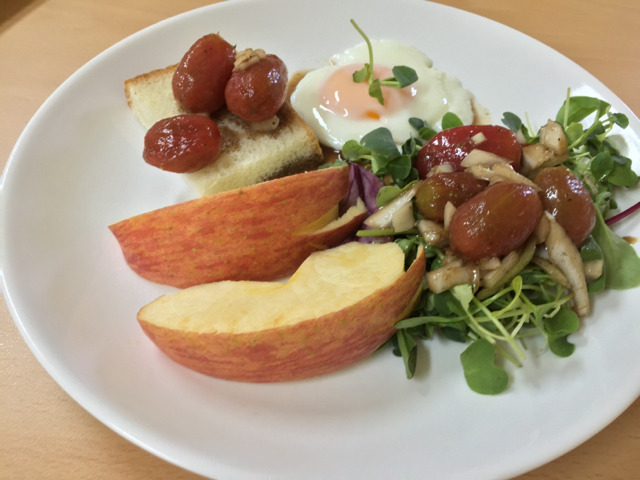 수란 하나 만들어와서 사과랑 야채샐러드랑 곁들여 드렸더니
