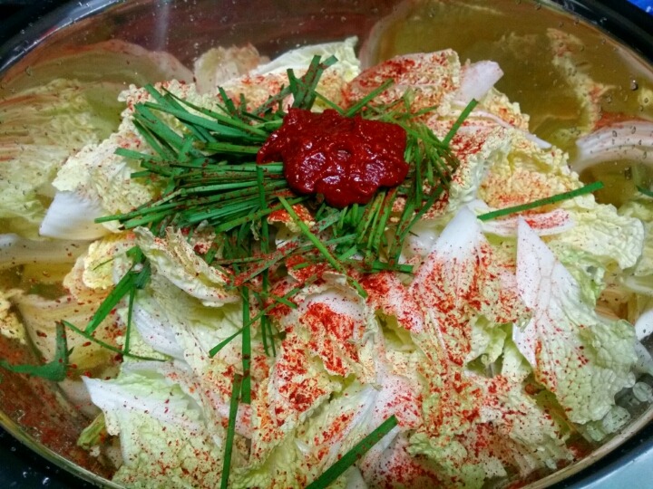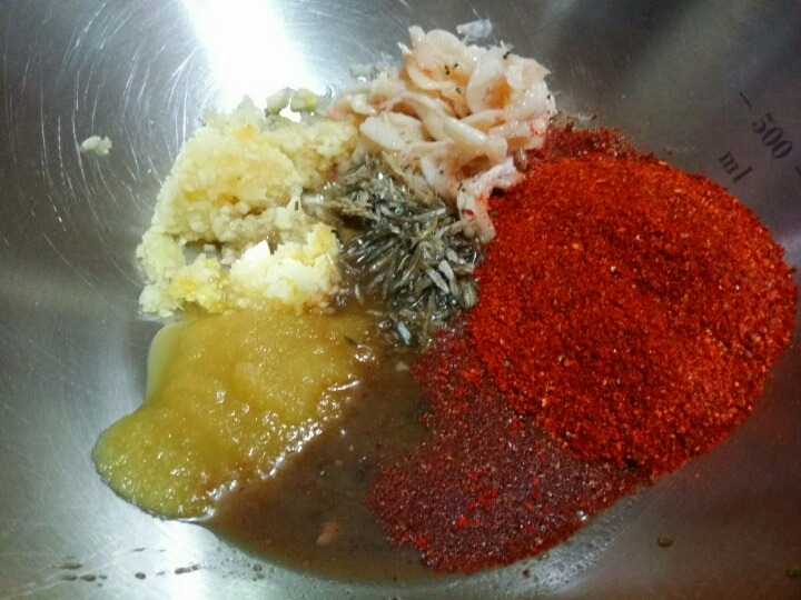 액젓, 마늘, 생강효소, 새우젓, 멸치가루넣고~