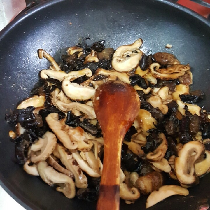 표고버섯과 목이버섯을 볶아줍니다.