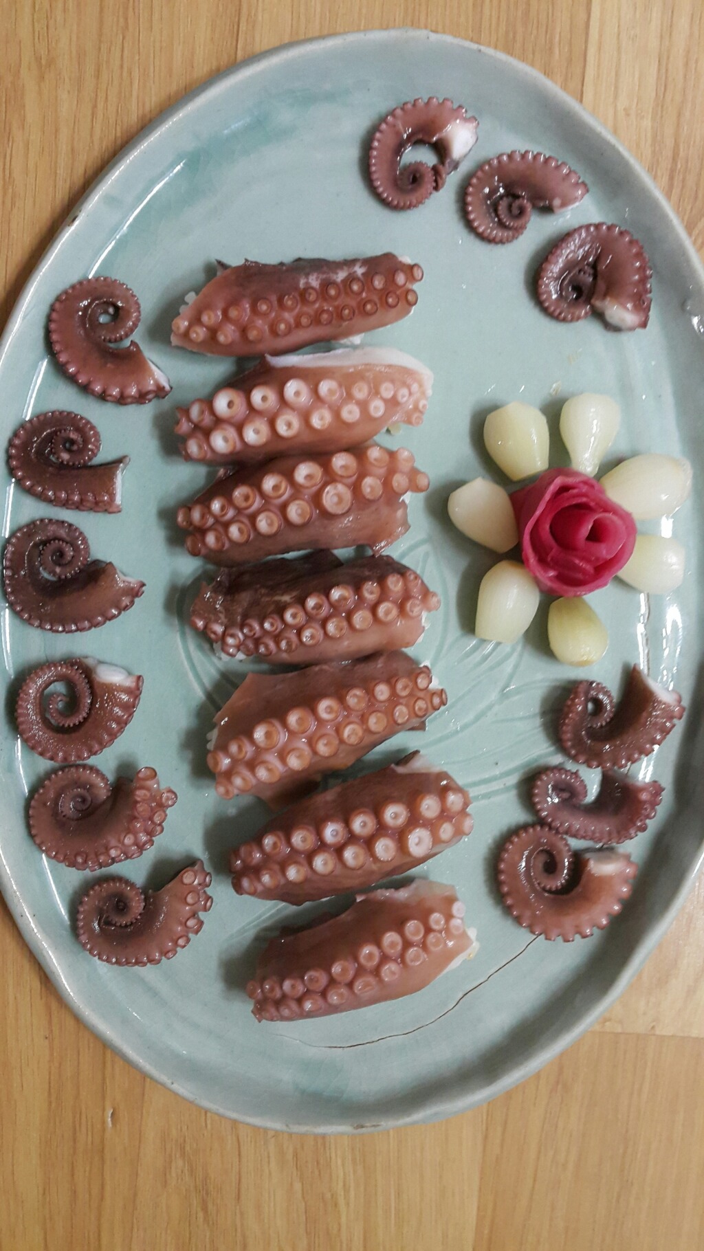 문어를 얇게 포 떠서 초밥위에 얹어서