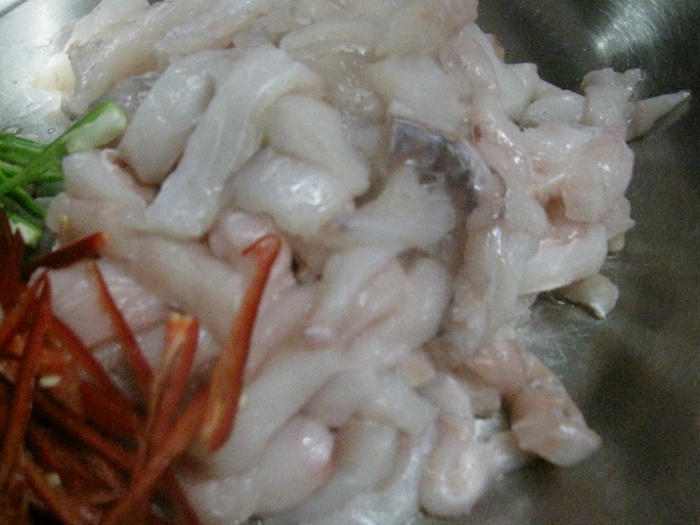 2, 서대를 식초에서 건져 살짝 가볍게 짜놓습니다.