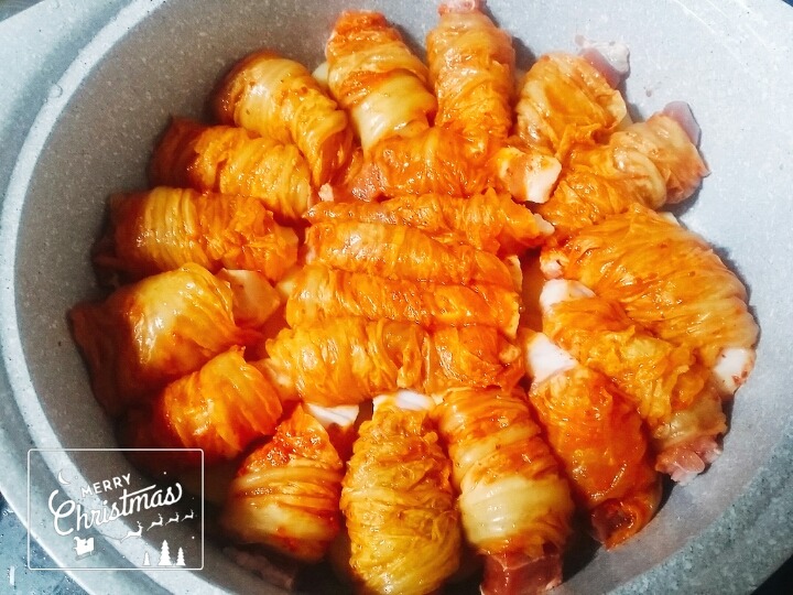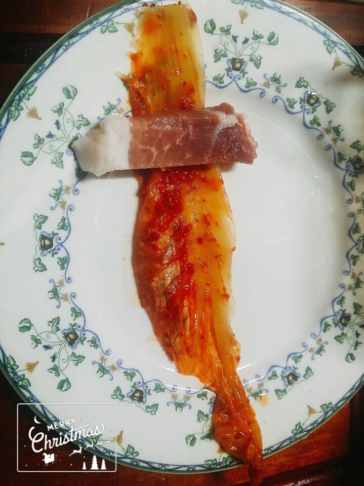 김치가 부족하여 고기를 충분히 감싸지는 못했네요..