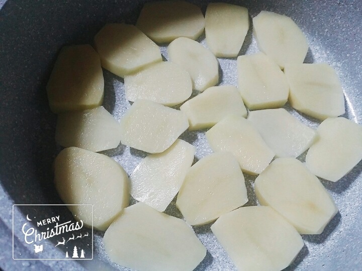 밑에 김치가 타지않게 감자를 두껍게 썰어 깔아줘요~