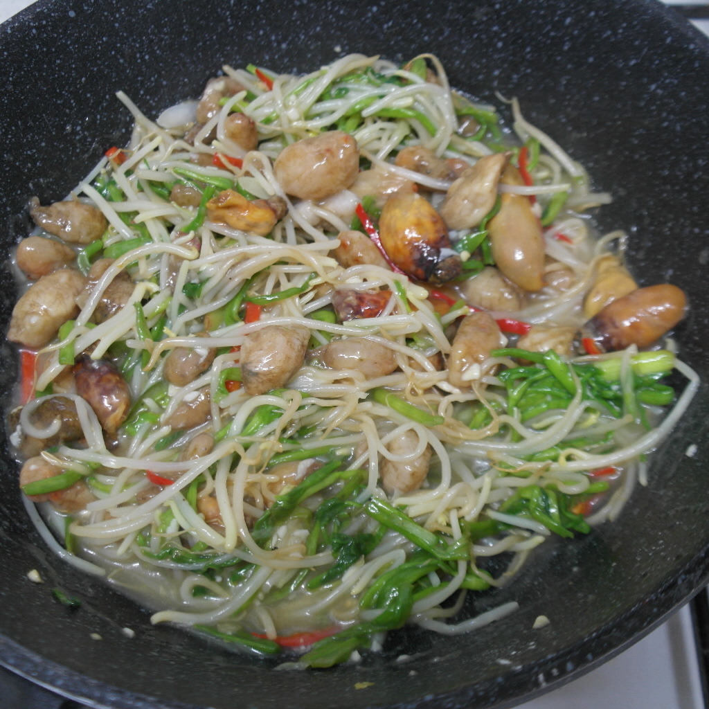 콩나물를 쎈불에 슬쩍 볶아주지요.
