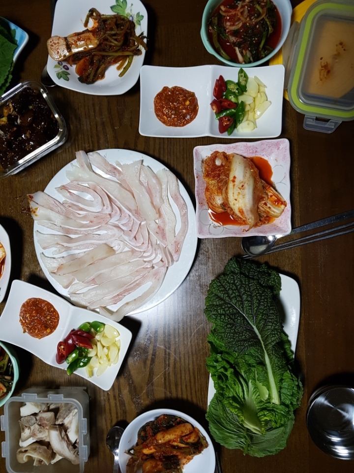 막상받고보니 넘커서 어떻께 요리(?)해야 하나하고 궁리끝에 한번 해보자고 무작정 생각대로 요리조리 하다보니 회와 조림 구이 등 세종류의 작품아닌작품이 나와 동생네와 온식구가 둘러 앉아 맛나게 먹엇네요..